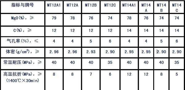 鋼包用鎂碳磚理化指標(biāo)
